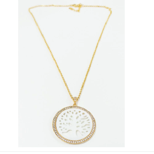O colar de árvore branca é um charme e deixa o seu look mais elegante. Perfeito para um visual romântico. E você pode combinar com outros colares se quiser um visual mais ousado. O banho em ouro deixa a peça mais bonita e permite que fique bem com qualquer look. Use e abuse!
