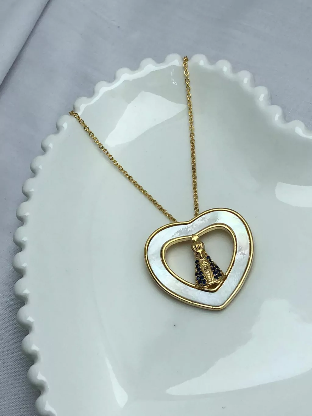 Maravilhe-se com a divina elegância do Conjunto Perolado Nossa Senhora de Aparecida Cravejado. Este conjunto é uma reverência à fé e à devoção, apresentando uma delicada representação de Nossa Senhora de Aparecida cravejada em meio a um fundo de pérolas luminosas. Cada detalhe desta peça é uma manifestação de beleza celestial, exalando uma aura de serenidade e proteção. Seja como uma expressão de fé ou como um símbolo de beleza atemporal, este conjunto cativa os corações com sua graça e significado profundo, tornando-se um tesouro precioso em qualquer coleção.