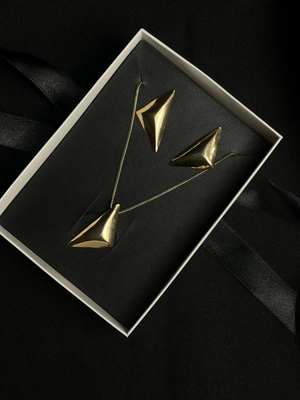 Perfeito para quem busca um acessório que transcende o comum, o Conjunto Orgânico Triangular combina elegância e autenticidade, ideal para ocasiões especiais ou para transformar o look do dia a dia com um toque de charme único.