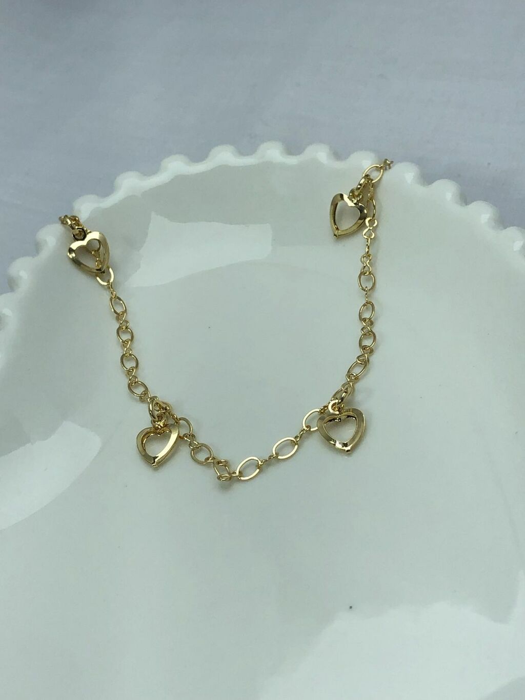 Encante-se com a delicadeza e o romance da nossa exuberante tornozeleira de ouro 18k, adornada com corações vazados que transbordam amor e elegância. Cada elo desta joia única é cuidadosamente trabalhado para criar um padrão de corações entrelaçados, simbolizando a conexão eterna entre os amantes. O design vazado adiciona uma leveza encantadora, permitindo que a pele respire enquanto você desfila com estilo. Seja para um passeio descontraído ou uma ocasião especial, esta tornozeleira é o complemento perfeito para qualquer look, adicionando um toque de romance e sofisticação instantâneos. Celebre o amor e a beleza da vida com esta tornozeleira de corações vazados, uma joia que captura a essência do amor verdadeiro e duradouro.